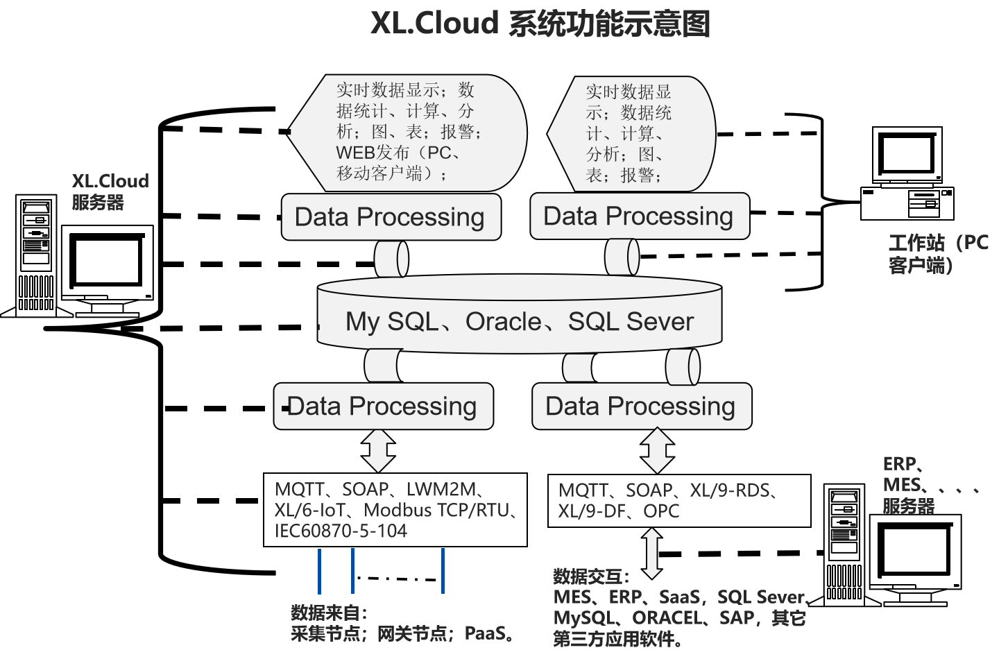 支持MQTT、LWM2M、SOAP,XL/6-IoT、XL/9-DB、XL/9-RDS,等等通信協(xié)議,并可和第三方數(shù)據庫,Oracle、SAP等交換數(shù)據