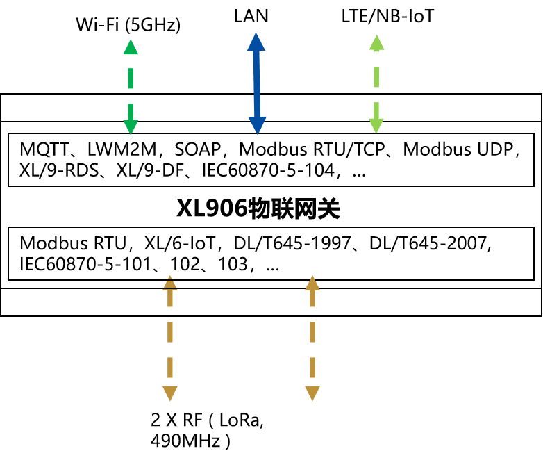 能源消耗監控管理系統,選用深圳信立XL90物聯網關,無線讀取各能耗監測點的數據,進行協議、通訊轉換后,推送至上層軟件平臺;