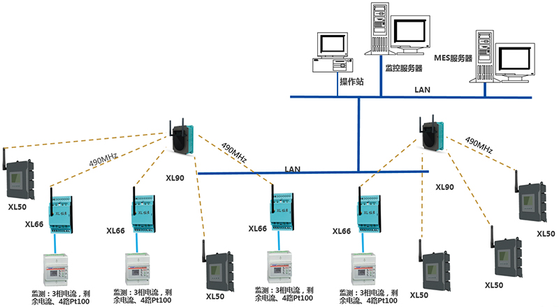 由2臺(tái)XL90物聯(lián)網(wǎng)關(guān),35臺(tái)XL66無(wú)線轉(zhuǎn)換器、28臺(tái)XL50,及電氣儀表、溫度傳感器等等構(gòu)成