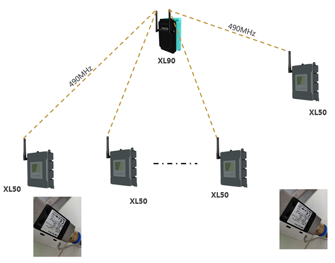?XL50通過無線,上傳瞬時流量、累積流量數據至XL90網關