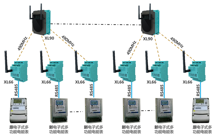 已安裝有電子式多功能電能表的電能監測點(共有4個監測點),每個監測點配置1臺XL66智能轉換器,從電能表讀取用電數據上傳至XL90物聯網關;