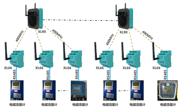 每個監測點配置1臺XL66智能轉換器,從已安裝的電磁流量計讀取流量數據上傳至XL90物聯網關;