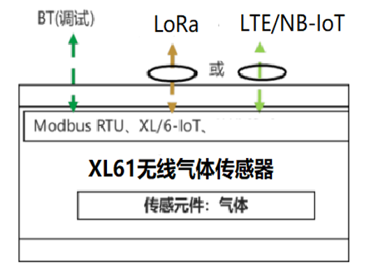 XL61無線氣體傳感器,可選LoRa、LTE/NB等通信方式,支持Modbus RTU、XL/6-IoT通信協議。