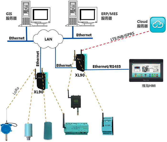 2、選擇LoRa通信,須配套XL9系列網關,或網關終端使用;網關支持Ethernet、WIFI、4G/NB上傳,MQTT、 Modbus、API、數據庫等通信協議;