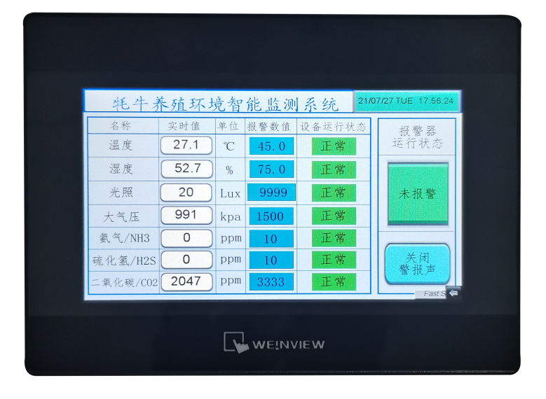 2、采集到的環境數據可以在觸摸屏中進行準確的展示;