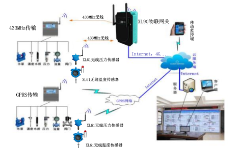 2、傳輸層:傳輸層主要有物聯(lián)網(wǎng)關(guān)、無線采集裝置、無線壓力變送器、無線溫度傳感器、NB、4G、射頻無線傳輸網(wǎng)絡(luò)組成。