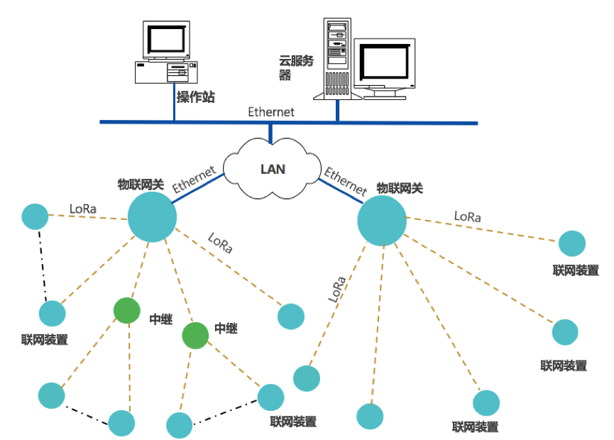 聯網裝置,采集設備運行數據,通過LoRa上傳數據至物聯網關,網關通過EthernetWi-Fi,接入云平服務器;