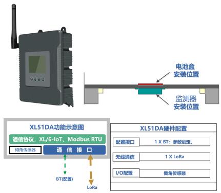 井蓋移動監測:選擇低功耗無線傾角傳感器XL51DA實現。