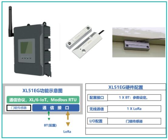 門開啟監測:選擇低功耗無線門磁傳感器XL51EG實現。