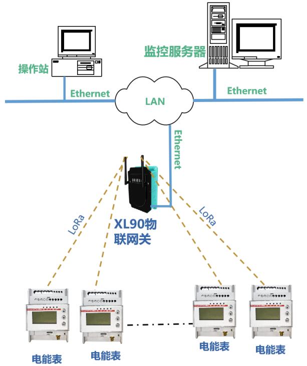 選擇DTSD3366XX/XL系列無線電能表,配置LoRa通信,分布在車間、工廠各點的用電數據,無線匯聚到網關,接入監控服務器,降低施工費用,減少了更多的麻煩。