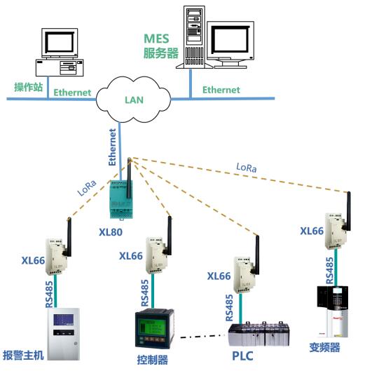 XL80主機,通過LoRa無線接口,從XL66無線讀取設(shè)備的運行數(shù)據(jù),通信協(xié)議轉(zhuǎn)換處理后,通過Ethernet,轉(zhuǎn)發(fā)數(shù)據(jù)至MES。
