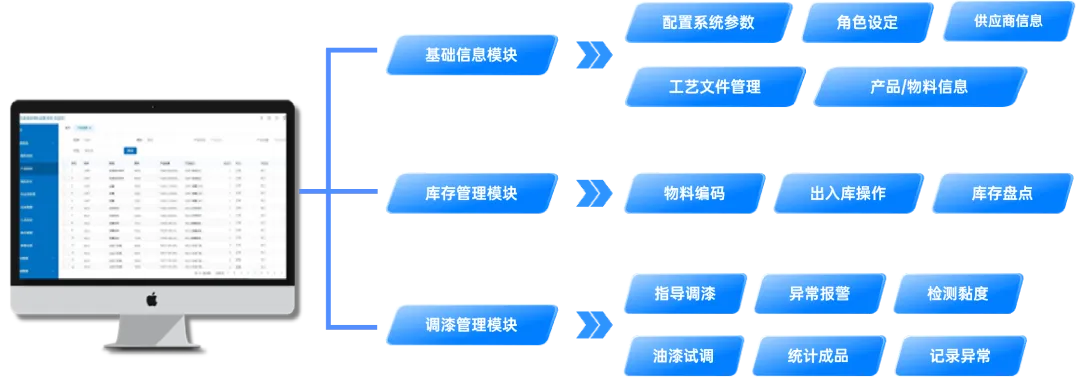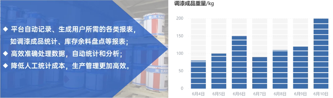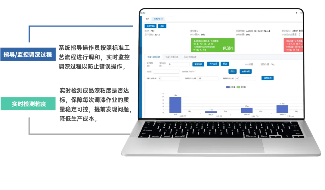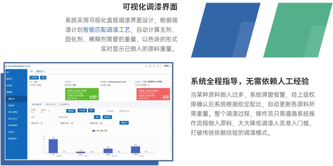 九大亮點功能,完美解決傳統調漆、制漆的固有問題,降低對人的依賴減少漆料浪費,更準確完整地計算統計漆料的使用及產出。